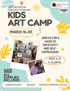 Spring Break Kid's Art CampSpring Break Kid's Art Camp Mon, Mar 16 to Fri, Mar 20, 2026 (5 sessions) 11am to 12:30pm Ages 5-12 $65 All Supplies IncludedPlease enable JavaScript in your browser to complete this form.Please enable JavaScript in your browser to complete this form. I consent Numbers Parent Name *FirstLastChild/Participant Name *FirstLastParticipants Age *Email *Numbers *I hereby consent to the taking of photographs, video and/or audio of my participation (or the participation of the minor named above) in a workshop/class by the Station House Gallery and its authorized representatives. *YesNoAny Additional InformationSubmit
